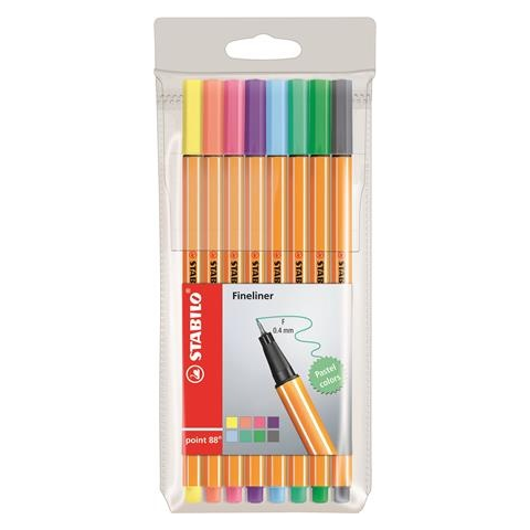 STABILO Tűfilc készlet, 0,4 mm, "Point 88", 8 pasztell szín filctoll, marker árgrafikon