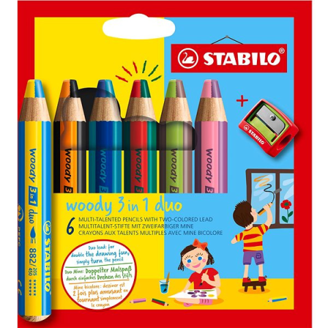 1 kép STABILO woody 3 az 1-ben duo 6 db tok hegyezővel