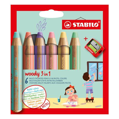 1 kép STABILO woody 3in1 Pastel 6 db/csomag krétaceruza készlet hegyezővel