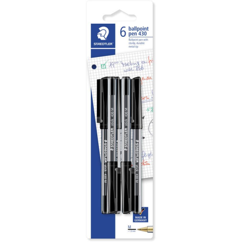 Teljes STAEDTLER 430 4 darabos Kupakos Golyóstoll készlet M - Fekete (430M9BK6D) termékleírás