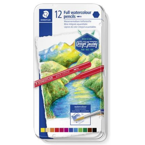 STAEDTLER Akvarell ceruza készlet, fém doboz, hatszögletű, "Design Journey", 12 különböző szín