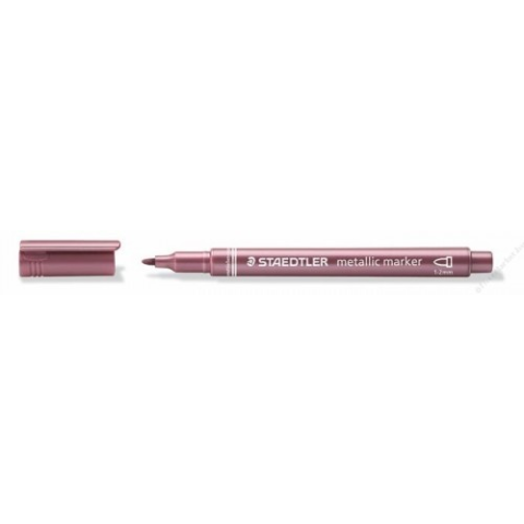 Dekormarker, 1-2 mm, kúpos, STAEDTLER 8323, metálpiros (TS8323232) metál színű marker, teljesen fedi a felületet íráshoz, dekoráláshoz használható világos és sötét színű papíron, kartonon ideális albumok és üdvözlőkártyák készítéséhez használat előtt n