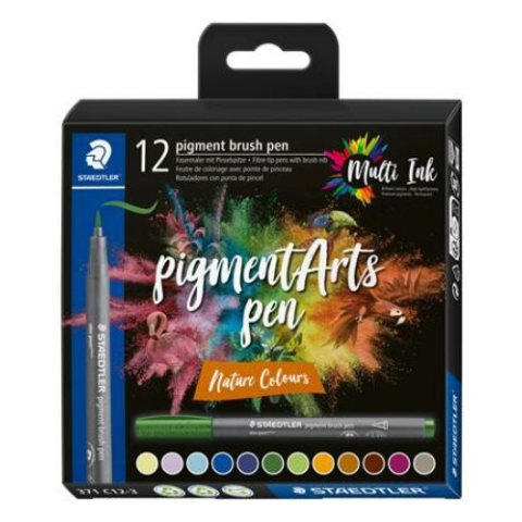 Ecsetirón készlet, STAEDTLER "Pigment brush 371", 12 különböző természeti szín - TS371C123 - Rostirónok és tűfilcek - Tegye ragyogóvá a műalkotásokat - Legyen MULTI kreatív!