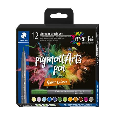 Ecsetirón készlet, STAEDTLER Pigment brush 371, 12 különböző természeti szín Tegye ragyogóvá a műalkotásokat - Legyen MULTI kreatív! Innováció a színes és fenntartható jövőért - a STAEDTLER új Pigment arts ecset- és rostirón választéka az egyedülálló