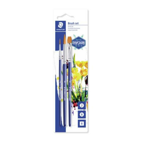 Ecsetkészlet, STAEDTLER 989 (TS989SBK33) - 3 különböző méretű és formájú ecset - fa borítás, fém fogórésszel - kiváló rugalmasság és formatartás - ideális vízfestékhez, akrill festékhez, gouache, olaj és vízbázisú ceruzákhoz, krétákhoz Gyártó/első EU