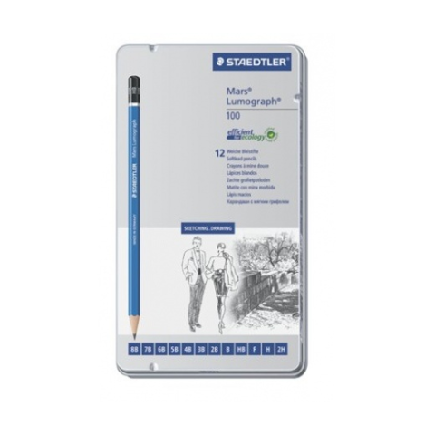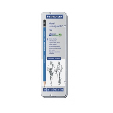 Grafitceruza készlet, fém doboz, hatszögletű, STAEDTLER "Mars Lumograph 100", 6 különböző keménység