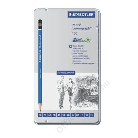STAEDTLER Grafitceruza készlet, fém doboz, hatszögletű, STAEDTLER Mars Lumograph, 12 különböző méret (TS100G12S) ceruza termékleírás