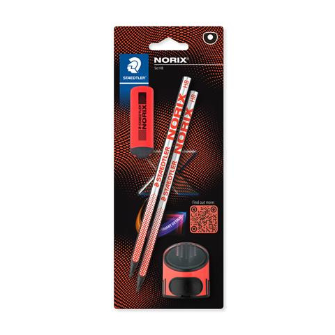 STAEDTLER Grafitceruza készlet, hegyezővel, radírral, HB, STAEDTLER Norix® 181 , korall piros ceruza termékleírás