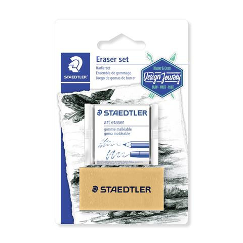 Gyurmaradír készlet, STAEDTLER, 5427 - Speciális, formázható radír rajzoláshoz - Egészen kicsi és nagy területeken is használható - Csomag tartalma: egy gyurmaradír és egy tisztító radír Gyártó/első EU forgalmazó elérhetősége: STAEDTLER SE Moosäckers