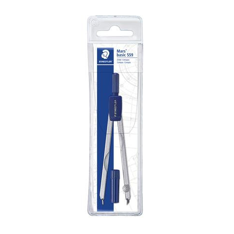 Körző készlet, 2 darabos, STAEDTLER Mars Basic 559 -fém hegyével precíz, egyenletes sugarú körök rajzolhatók -tompított, biztonsági heggyel -nikkelmentes fém alapanyag -maximális kör átmérő: 340 mm -hosszúság: 128 mm -pót körzőheggyel Gyártó/első