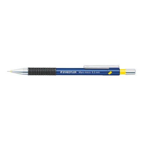 Nyomósirón, 0,3 mm, STAEDTLER Mars micro 775, kék - alkalmas íráshoz és rajzoláshoz - csúszásmentes, gumírozott fogórész - fém klip, nyomógomb és hegy - nyomógombos mechanika - merev, henger alakú cső, ideális vonalzóval és sablonokkal való használatra