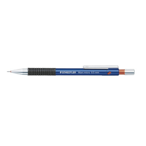 Nyomósirón, 0,5 mm, STAEDTLER Mars micro 775, kék - alkalmas íráshoz és rajzoláshoz - csúszásmentes, gumírozott fogórész - fém klip, nyomógomb és hegy - nyomógombos mechanika - merev, henger alakú cső, ideális vonalzóval és sablonokkal való használatra