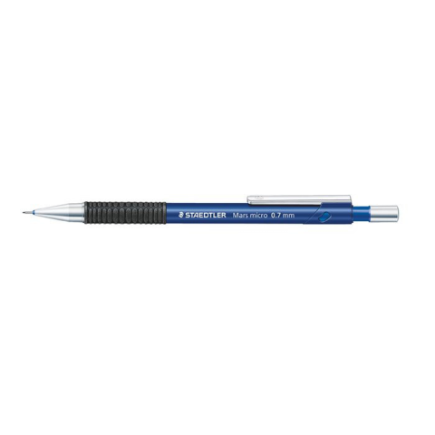 Nyomósirón, 0,7 mm, STAEDTLER Mars micro 775, kék - alkalmas íráshoz és rajzoláshoz - csúszásmentes, gumírozott fogórész - fém klip, nyomógomb és hegy - nyomógombos mechanika - merev, henger alakú cső, ideális vonalzóval és sablonokkal való használatra