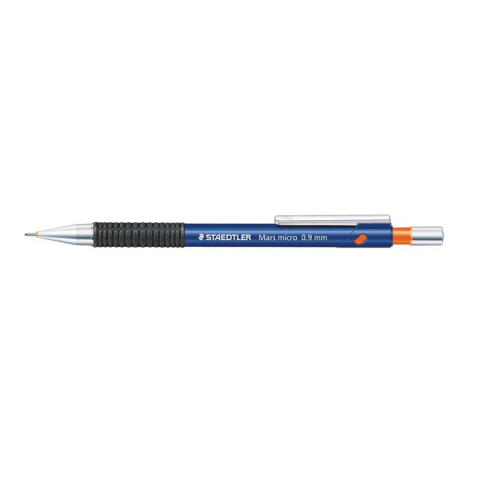 Nyomósirón, 0,9 mm, STAEDTLER Mars micro 775, kék - alkalmas íráshoz és rajzoláshoz - csúszásmentes, gumírozott fogórész - fém klip, nyomógomb és hegy - nyomógombos mechanika - merev, henger alakú cső, ideális vonalzóval és sablonokkal való használatra