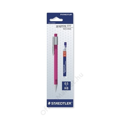 Nyomósirón és grafitbél, 0,5 mm, STAEDTLER Graphite 777, vegyes színek (TS7775SBK25D) - matt, áttetsző design - gumírozott tolltest - grafitbéllel törésmentesen utántölthető - nagy méretű, PVC és latex-mentes radír - nyomósirón B-s heggyel - 1 db nyom