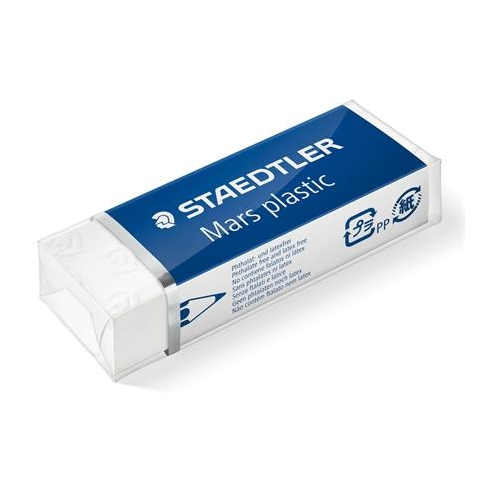 Radír, STAEDTLER Mars Plastic 50 Kiváló minőségű termék a kényelmes radírozásért - minimális morzsolódás - prémium minőség - használatától a papír nem színeződik el - mérete: 65mm x 23mmx 13mm Gyártó/első EU forgalmazó elérhetősége: STAEDTLER SE Moo