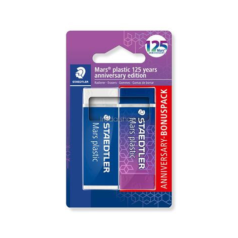Radír, STAEDTLER Mars® Plastic 526, 125 years, kék-lila Mars® - 125 év kiválóság. Ünnepelje velünk a prémium minőséget egy vibráló jubileumi kollekcióval! - minimális morzsolódás - prémium minőség - papírtokkal - egyenként fóliázva - latex- és ftalátm