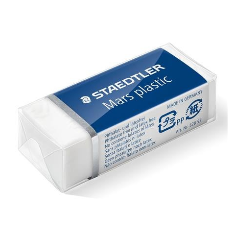 Radír, STAEDTLER Mars Plastic 53 Kiváló minőségű termék a kényelmes radírozásért - minimális morzsolódás - prémium minőség - használatától a papír nem színeződik el - mérete: 40mm x 19mm x 13mm Gyártó/első EU forgalmazó elérhetősége: STAEDTLER SE Mo