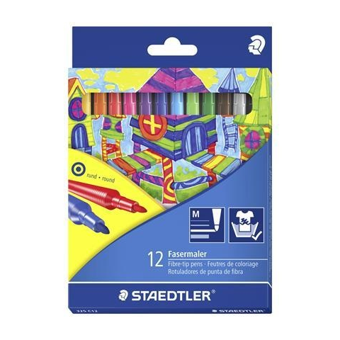 Rostirón készlet, 1 mm, STAEDTLER 325, 12 különböző szín (TS325C12) stabil, nyomásálló hegy Dry Safe: napokig nem szárad ki kupak nélkül szellőző kupak vízbázisú tinta a legtöbb textilből könnyen kimosható PP tolltest és kupak a hosszú élettartamért G