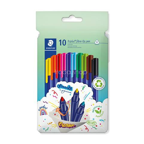 Filctoll készlet, 1 mm, STAEDTLER Triplus 323, 10 különböző szín Az ergonomikusan tervezett Triplus tűfilcek kényelmes, precíz írást biztosítanak. - szupervékony, fémfoglalatú hegy - ergonomikus háromszögletű tolltest a kényelmes írásért - Dry Safe: n