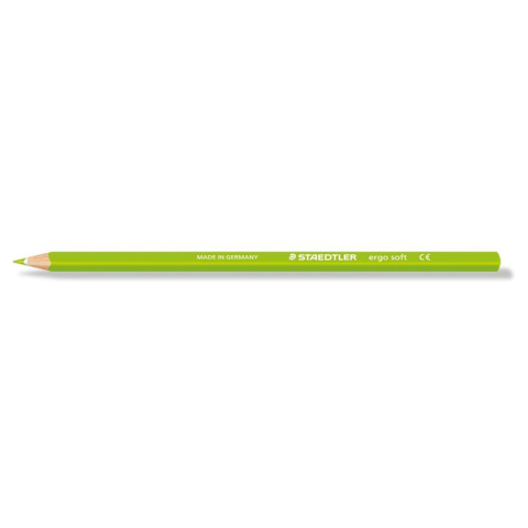 Színes ceruza, háromszögletű, STAEDTLER Ergo Soft 157, világoszöld - egyedülálló csúszásmentes felület - névvel feliratozható - víz-bázisú lakkal bevonva - A.B.S - Anti Break System: fehér színű bevonat, mely megvédi a ceruzabelet a töréstől - ergonom