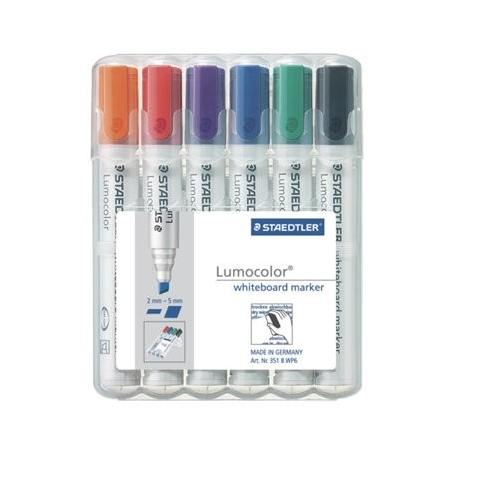 STAEDTLER Táblamarker készlet, 2-5 mm, vágott, STAEDTLER "Lumocolor 351 B", 6 különböző szín filctoll, marker termékleírás