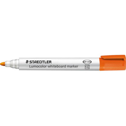 Táblamarker Staedtler Lumocolor kerek narancssárga Kerek hegyű táblamarkerSzárazon, nyom nélkül letörölhető a fehértábláról valamint az olyan felületekről, mint az üveg és a porcelánGyorsan száradó, enyhe szagúDRY SAFE technológia: napokig kupak nélkül