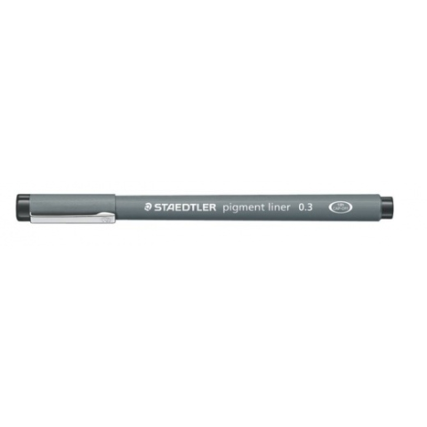 Tusfilc, 0,3 mm, STAEDTLER Pigment Liner 308, fekete - tűfilc rajzoláshoz, íráshoz, vázlatkészítéshez - hosszú fémhegy - ideális vonalzóhoz, sablonokhoz - pigment tinta, kitörölhetetlen (ISO 14145-2 szerint), fényálló, vízálló - vázlatpapíron radírozha