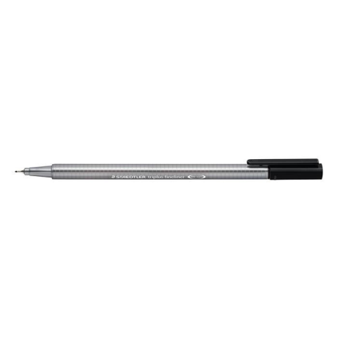 Tűfilc, 0,3 mm, STAEDTLER Triplus 334, fekete - szupervékony, fémfoglalatú hegy - ergonomikus háromszögletű tolltest a kényelmes írásért - Dry Safe: napokig nem szárad ki kupak nélkül - vízbázisú tinta - a legtöbb textíliából kimosható - PP tolltest a
