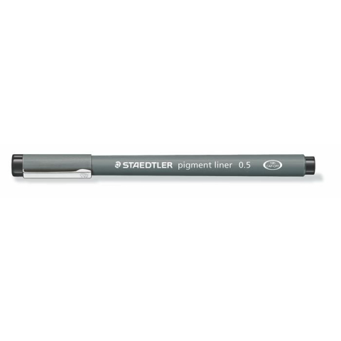 Tusfilc, 0,5 mm, STAEDTLER Pigment Liner 308, fekete - tűfilc rajzoláshoz, íráshoz, vázlatkészítéshez - hosszú fémhegy - ideális vonalzóhoz, sablonokhoz - pigment tinta, kitörölhetetlen (ISO 14145-2 szerint), fényálló, vízálló - vázlatpapíron radírozha