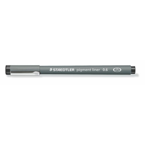 Tusfilc, 0,6 mm, STAEDTLER Pigment Liner 308, fekete - tűfilc rajzoláshoz, íráshoz, vázlatkészítéshez - hosszú fémhegy - ideális vonalzóhoz, sablonokhoz - pigment tinta, kitörölhetetlen (ISO 14145-2 szerint), fényálló, vízálló - vázlatpapíron radírozha
