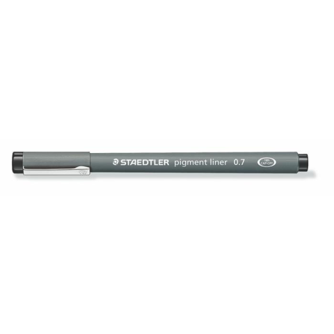 Tusfilc, 0,7 mm, STAEDTLER Pigment Liner 308, fekete - tűfilc rajzoláshoz, íráshoz, vázlatkészítéshez - hosszú fémhegy - ideális vonalzóhoz, sablonokhoz - pigment tinta, kitörölhetetlen (ISO 14145-2 szerint), fényálló, vízálló - vázlatpapíron radírozha