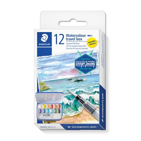 A Design Journey új fejlesztése, a csillogó hatást nyújtó akvarell vízfesték készlet, melyet kezdők és hobbiművészek is bátran használhatnak. -12 fémes hatású szín a lágyabb színátmenetekhez, melyek rétegezésével viszont intenzívebb színek érhetőek el -fedéllel ellátott praktikus dobozban, melyben könnyedén keverhetőek a színek -vízzel tölthető, M-es méretű ecsettel az akvarell hatás eléréséért -szivacs az ecset tisztásához Gyártó/első EU forga