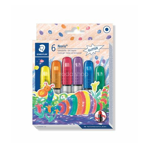 Zsírkréta, zselés, STAEDTLER Noris 2390, 6 csillogó szín - zselés kréta, kiválóan alkalmas gyerekek számára - kis kezekhez tervezve - könnyen kezelhető: csavarható test - extra puha hegy, élénk színek - kiválóan használható üvegen, sima felületeken és