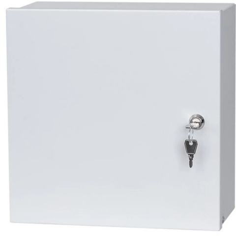 Fekete falra szerelhető üres optikai elosztódoboz.