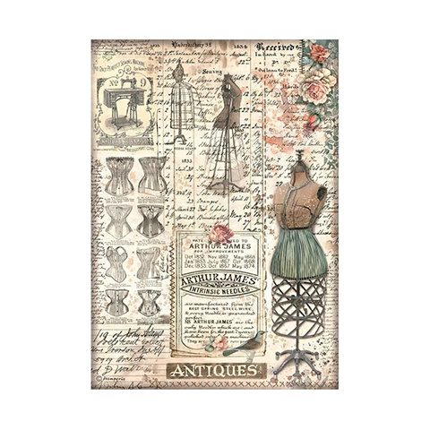 1 kép Stamperia Rizspapír A/4 Brocante Antiques mannequin