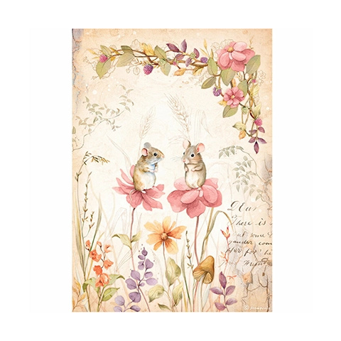 1 kép Stamperia Rizspapír A/4 erdei egerek és virágok