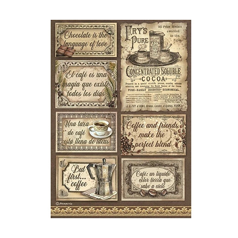1 kép Stamperia Rizspapír A/4 kávé, csoki címkék