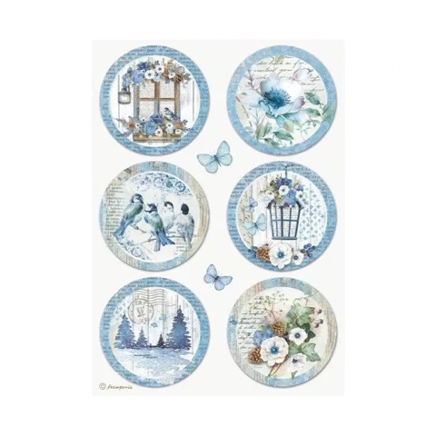 1 kép Stamperia Rizspapír A/4 kék világ körök