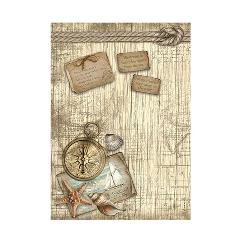 1 kép Stamperia Rizspapír A/4 Sea Land compass