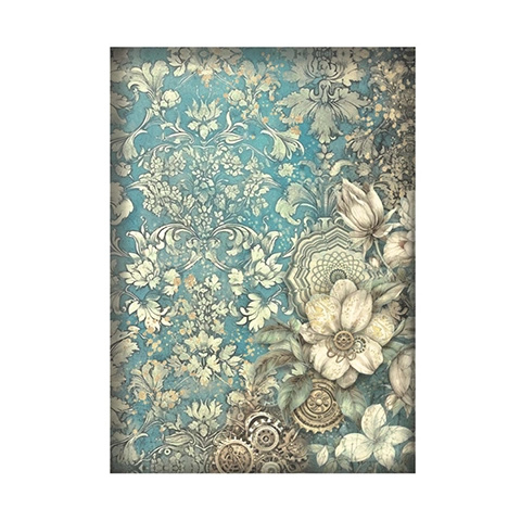1 kép Stamperia Rizspapír A/4 Sir Vagabond in Fantasy World white flowers