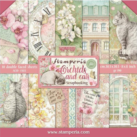 Stamperia scrapbook papír készlet - Orchids and Cats 20cm x 20cm dekorációs kellék 1 kép
