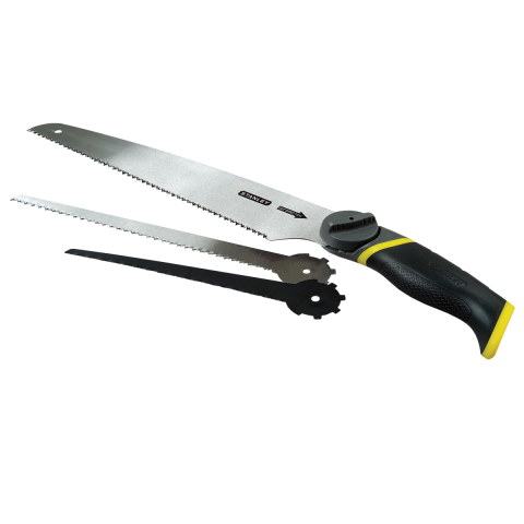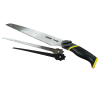 Sokoldalú felhasználást biztosít a három különböző fűrészlap- univerzális húzófűrészlap, fémfűrészlap és szúrófűrészlap. Bimateriális csúszásgátló recézettel ellátott nyél. 150mm/ 6" fémfűrészlap, fémcsövek, rudak elvágására. 200mm/ 8" szúrófűrész finom munkákhoz. 250mm/ 10" sűrű fogazású fűrészlap fához, húzó módban vág. Húzómódban kisebb a veszély a megcsuklásra, meghajlásra. A gomb a fűrészek 6 pozíciójába történő beállít