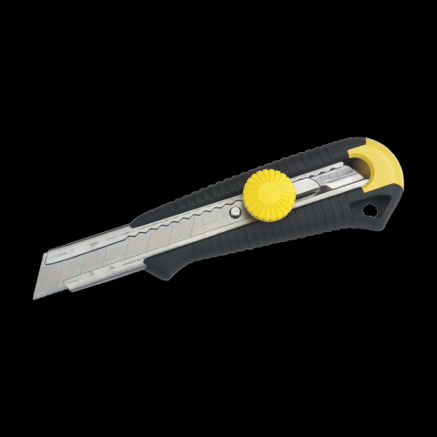 Tördelhető pengés kés 18mm, műanyagházas. Rozsdamentes acél tároló és vezető pengékhez. Kényelmes gumírozott nyél. Pengerögzítő gomb az extra stabilitás érdekében.