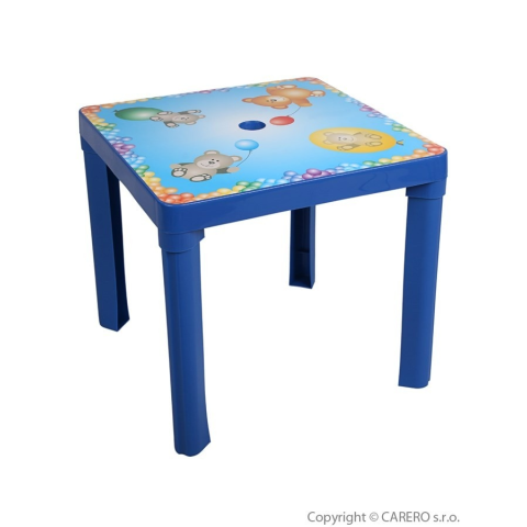 Gyerek műanyag kerti asztal vidám színekben és képpel. Mérete: kb. 46x46x43 cm. Terhelés: 12 kg.