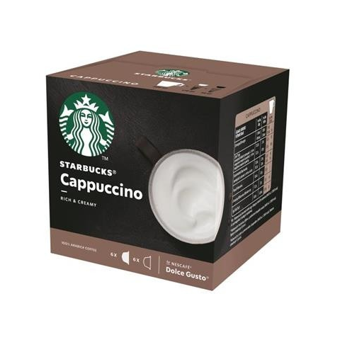 NESCAFÉ® Dolce Gusto® kávégépekkel kompatibilis kávékapszula A népszerű Starbucks® Cappuccino által ihletett, kiegyensúlyozottan lágy, kellemesen ismerős íz, őrölt pörkölt kávé és teljes tejpor cukorral.