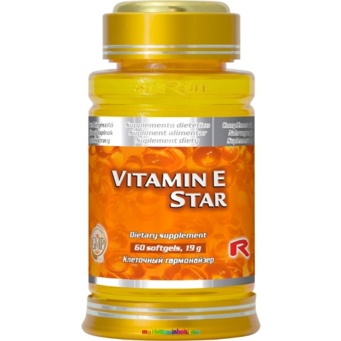 Vitamin E Star - E-Vitamin, 60 db lágyzselatin kapszula 100 mg - StarLife étrend-kiegészítő Az E-vitamin antioxidánsként védi a többszörösen telítetlen zsírsavakat a szabad gyökök károsító hatása ellen, így járul hozzá a sejtek normál működésének