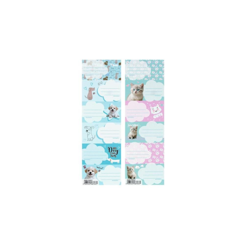 Cuki cicás és kutyás füzetcímkék: 6 db-os szett 🐶🐱 Vidám, színes füzetcímkék, melyekkel feldobhatod a füzeteidet! Kétféle változatban kapható: cicás és kutyás mintákkal. Minden ív 6 db címkét tartalmaz. Két gyönyörű minta közül választhatsz: Cic...