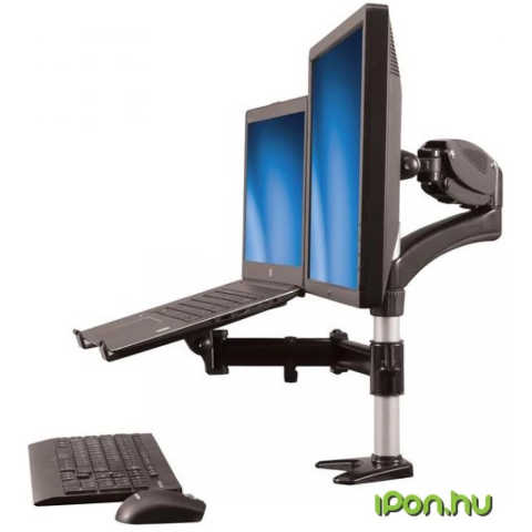 Asztalra rögzíthető állvány munkaállomásokhoz notebook és monitor tartóval 27"-ig.