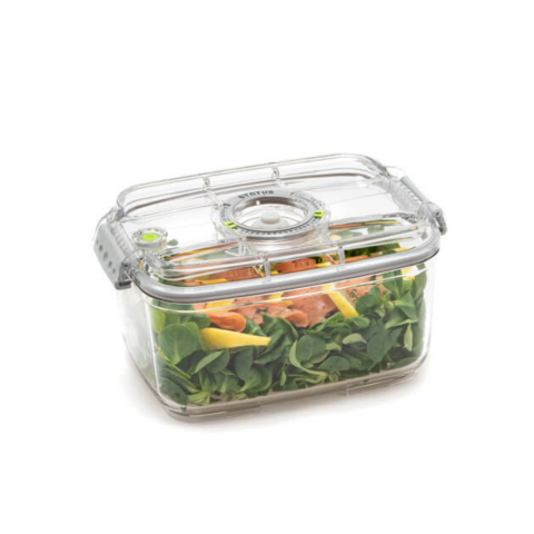 Vákuumos tároló tritánból 2,0 literes, vákuumjelzővel és tárolási vagy lejárati dátum kijelzővel.